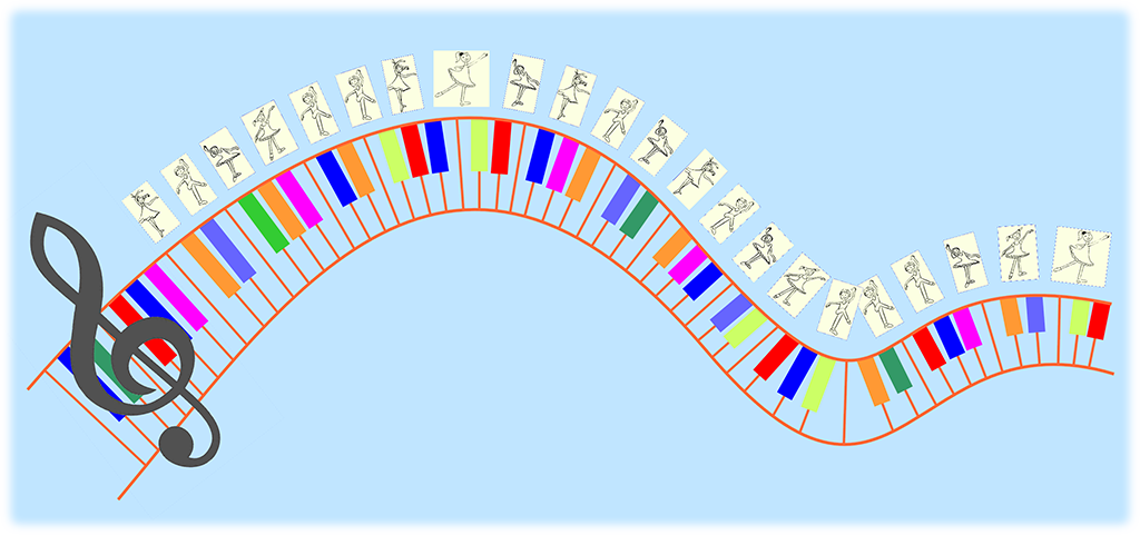 1. Akt: Chopin-Konzert, 1. Teil Die Konzertbesucher treffen sich im Theater Musikbegeisterte und weniger Begeisterte Schmetterlinge Katzen in der Nacht Aufbruch – Solo Zickenball Fernweh – Solo Auf dem fliegenden Teppich 2. Akt: Zwischenspiel Abschied Spiel 3. Akt: Chopin-Konzert, 2. Teil Meeresphantasie Geister Neuland – Solo Streit um die schwarzen Tasten Leidenschaft – Solo Sehnsucht Abschied |